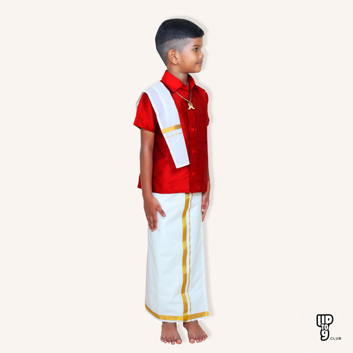 ROYAL TRENDY'S Ethnic Wear Boys' Art Silk Shirt & Dhoti Set - Red color
