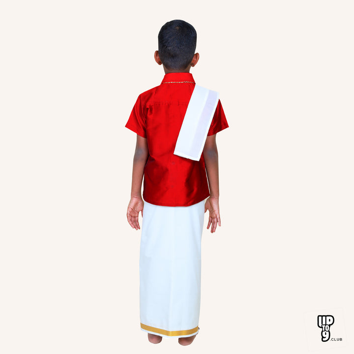 Red Colour Art silk shirt - dhoti set l size 1-10 l