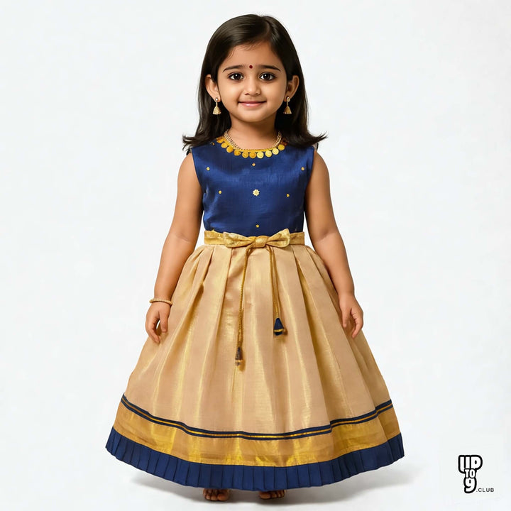 SHREE DEVI Girls Traditional Indian Lehenga Choli Set, Blue ,Mono Banglori Silk Tissue Cotton Pattu Pavada