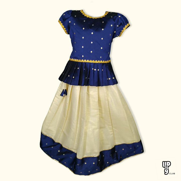 SHREE DEVI Girls Traditional Indian Lehenga Choli Set, Blue ,Taffeta Silk Tissue Cotton Pattu Pavada