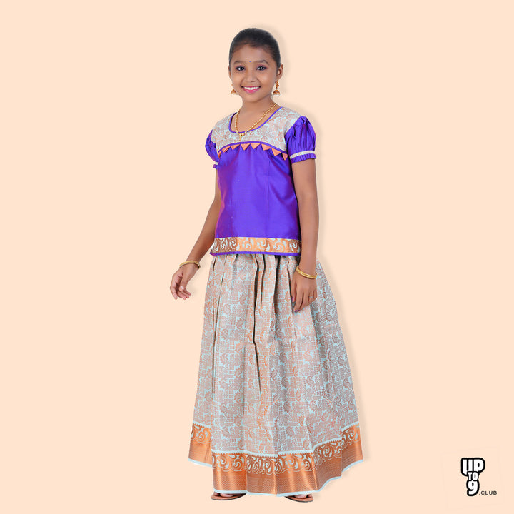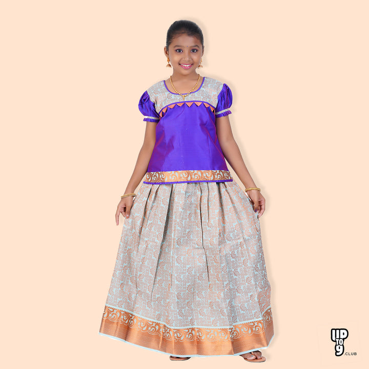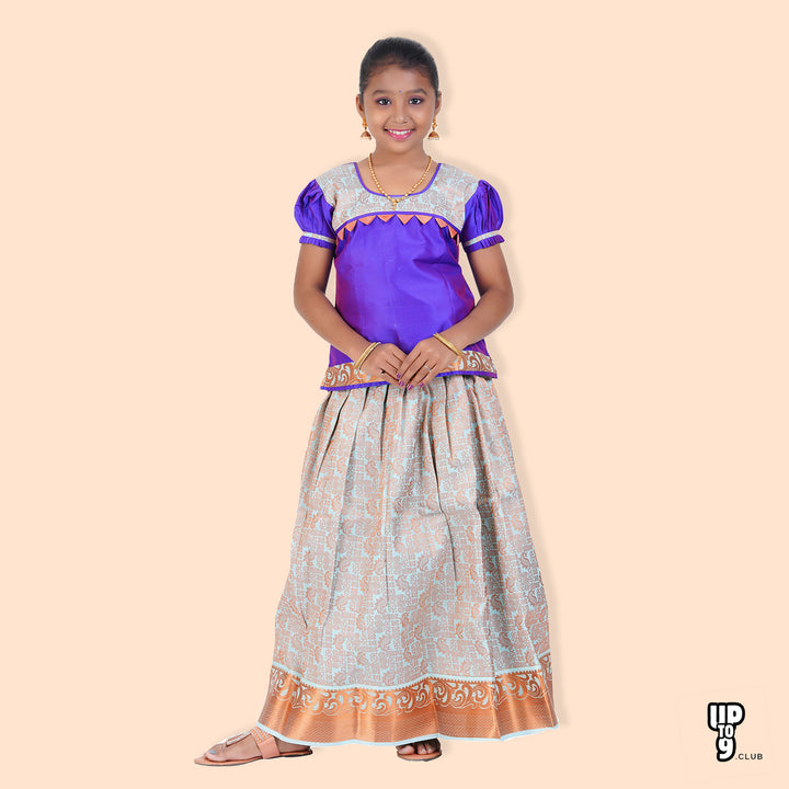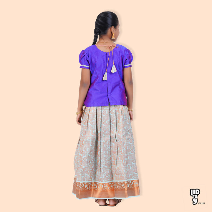 SKV ETHNIVERSE Girls' Traditional Indian Lehenga Choli Set, Purple and light blue Colour , pattu pavadai