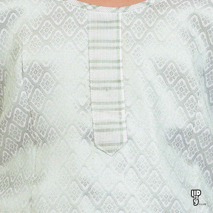 - Vibrant Ethnic Style: This elegant and colorful ethnic dress features a mint green top with intricate embellishment and a flowing print skirt.