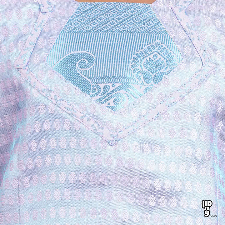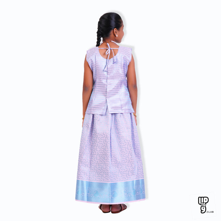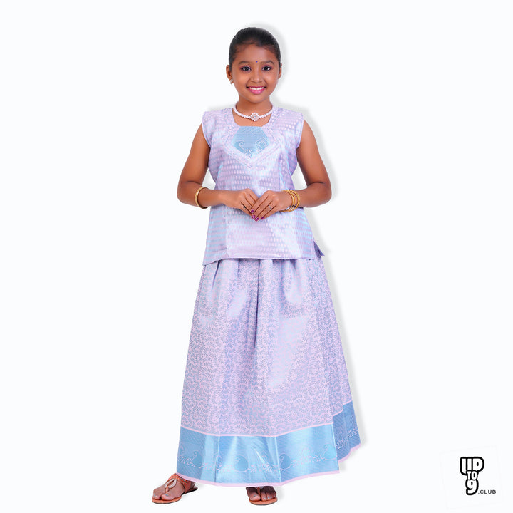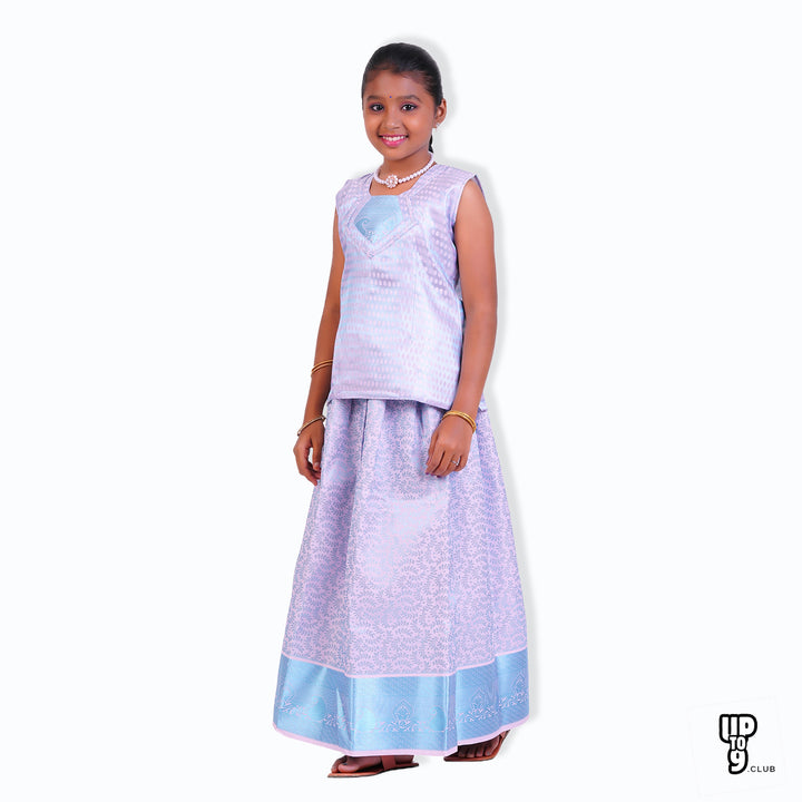 SKV ETHNIVERSE Girls' Traditional Indian Lehenga Choli Set, Pink and blue , Floral Print emboss pattu pavadai