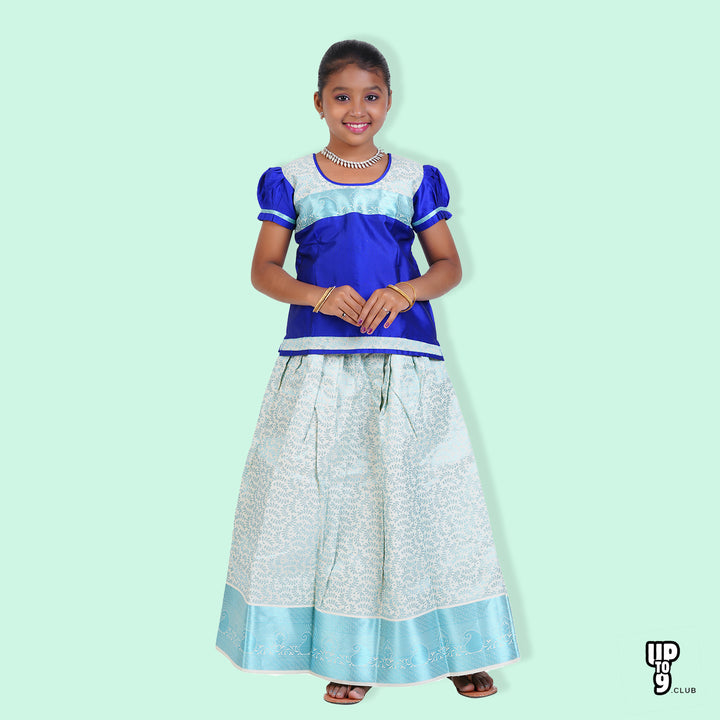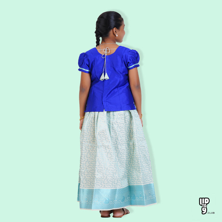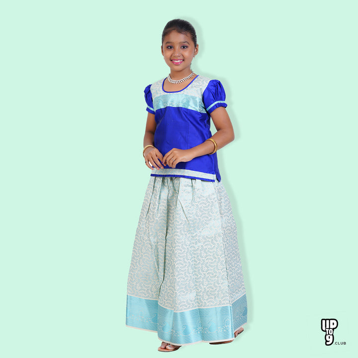 SKV ETHNIVERSE Girls' Traditional Indian Lehenga Choli Set, Blue and Aqua , pattu pavadai