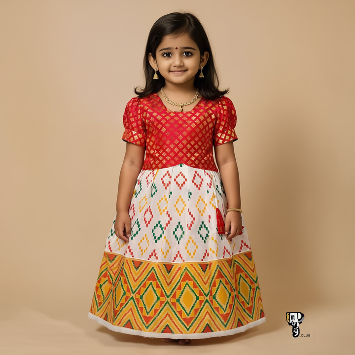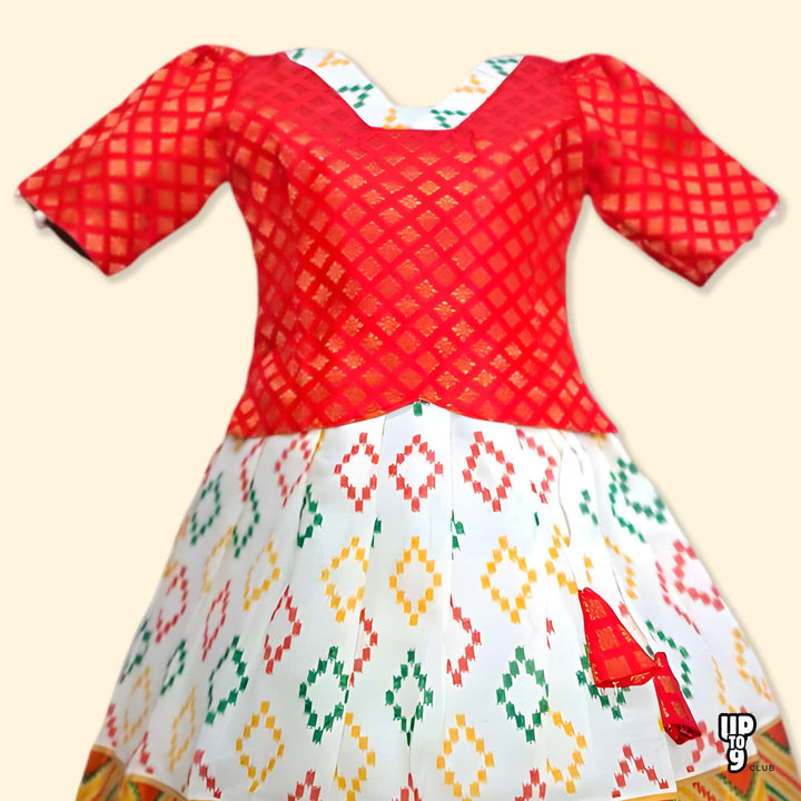 SRI LAKSHMI NARAYANA Girls Traditional Indian Lehenga Choli Set, Red, Banaras-Cotton Pattu Pavada 437SP