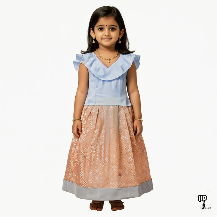 SRI LAKSHMI NARAYANA Girls Traditional Indian Lehenga Choli Set, Brown and Gray , Banarasi Silk Pattu Pavada 441SP