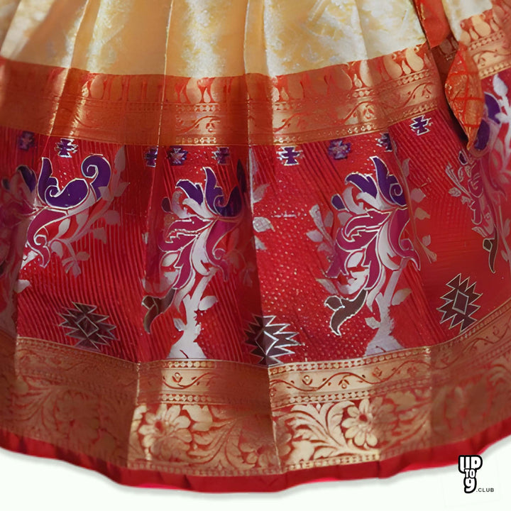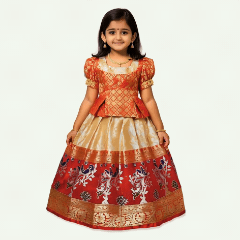 SRI LAKSHMI NARAYANA Girls Traditional Indian Lehenga Choli Set, Red ,Chanderi Silk Pattu Pavada 350SP