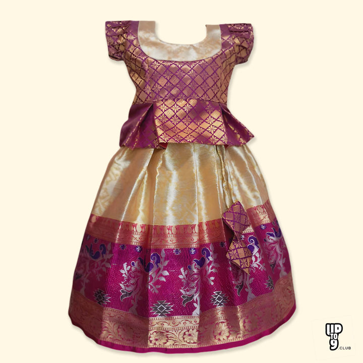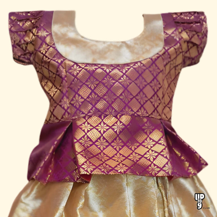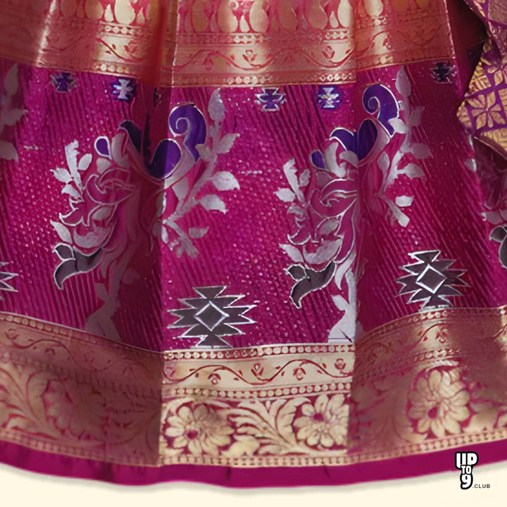 SRI LAKSHMI NARAYANA Girls Traditional Indian Lehenga Choli Set, Maroon , Chanderi Silk Pattu Pavada 350SP