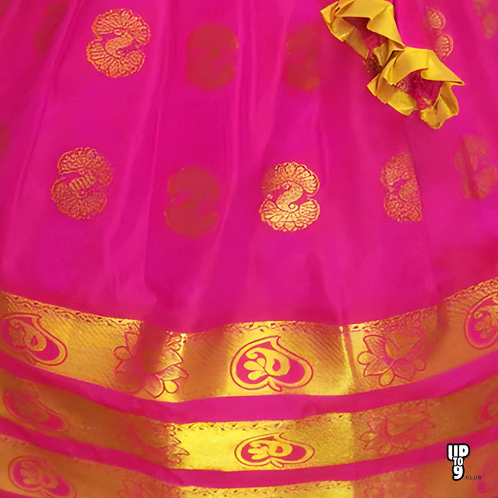 SRI LAKSHMI NARAYANA Girls Traditional Indian Lehenga Choli Set, Pink and Orange ,Embose Pattu Pavada 128VP
