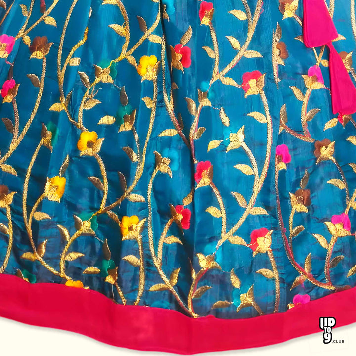 SRI LAKSHMI NARAYANA Girls Traditional Indian Lehenga Choli Set, Red and Blue , Banarasi Silk Pattu Pavada 335SP