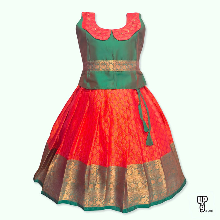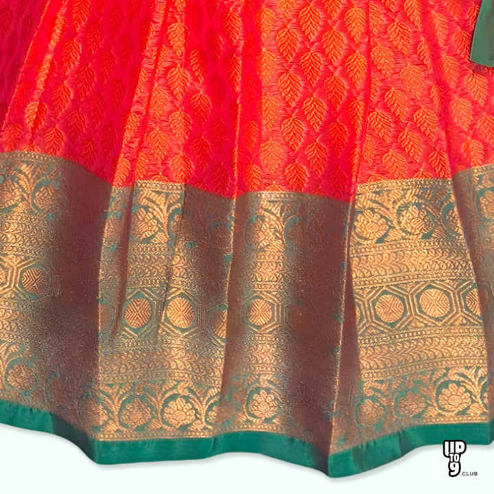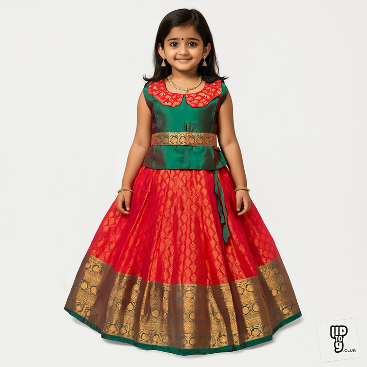 SRI LAKSHMI NARAYANA Girls Traditional Indian Lehenga Choli Set, Red and Green , Muslin Silk Pattu Pavada 352SP