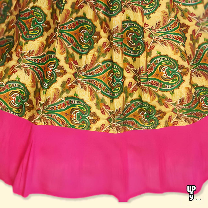 • Vibrant Ethnic Style: This elegant and colorful ethnic dress features a  Cotton top with intricate embellishment and a flowing print skirt.
