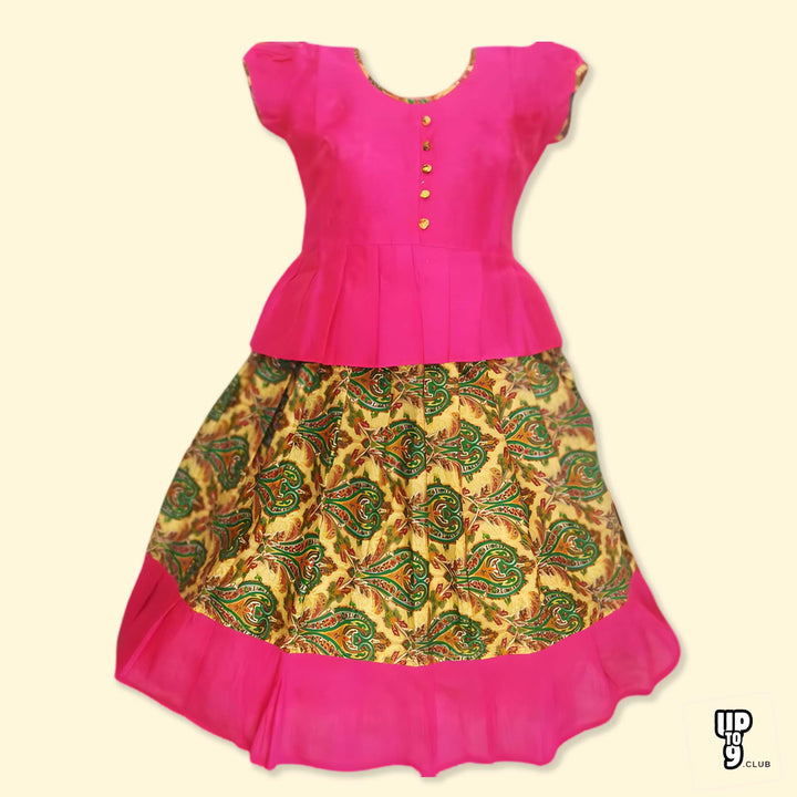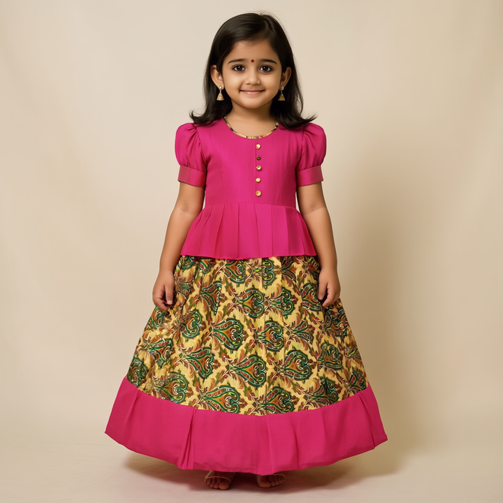 SRI LAKSHMI NARAYANA Girls Traditional Indian Lehenga Choli Set, Pink, Cotton Pattu Pavada 620SP