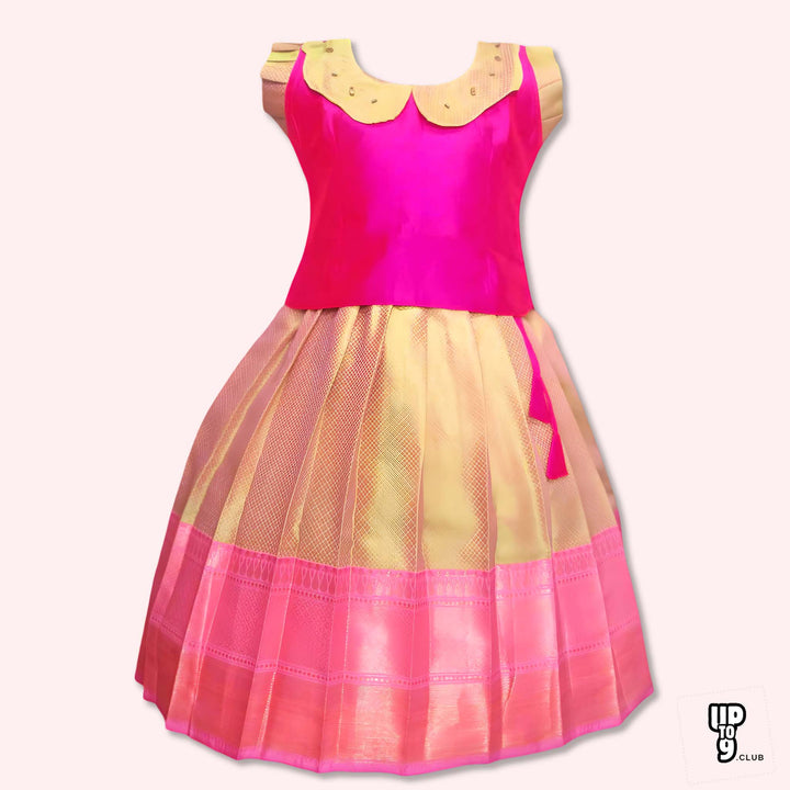 SRI LAKSHMI NARAYANA Girls Traditional Indian Lehenga Choli Set, Pink, Muslin Silk Pattu Pavada 353SP
