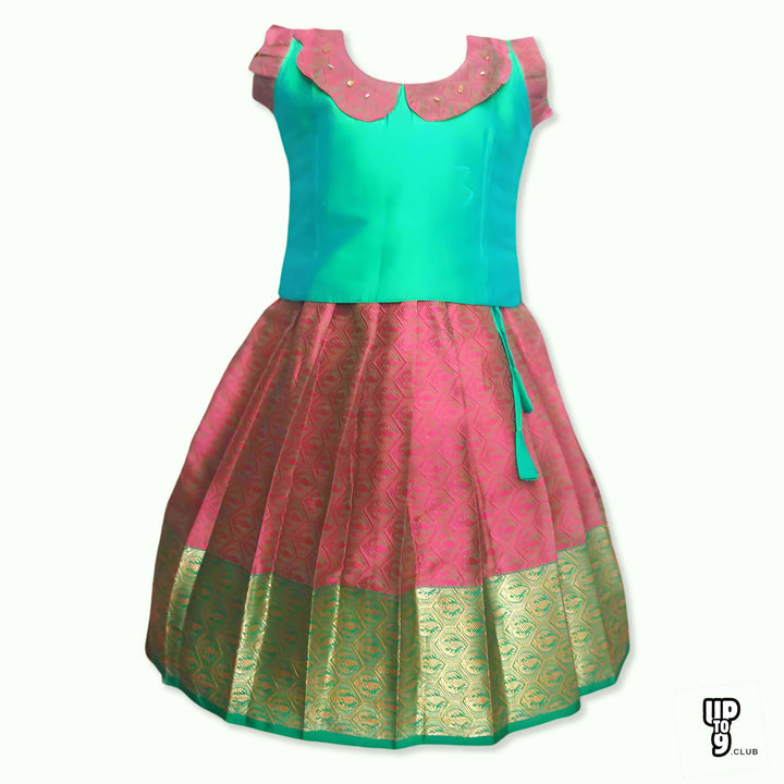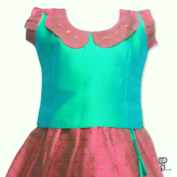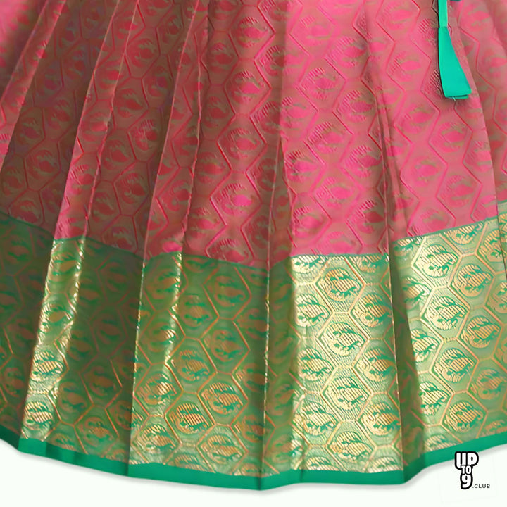 SRI LAKSHMI NARAYANA Girls Traditional Indian Lehenga Choli Set, Green and Red, Muslin Silk Pattu Pavada 353SP