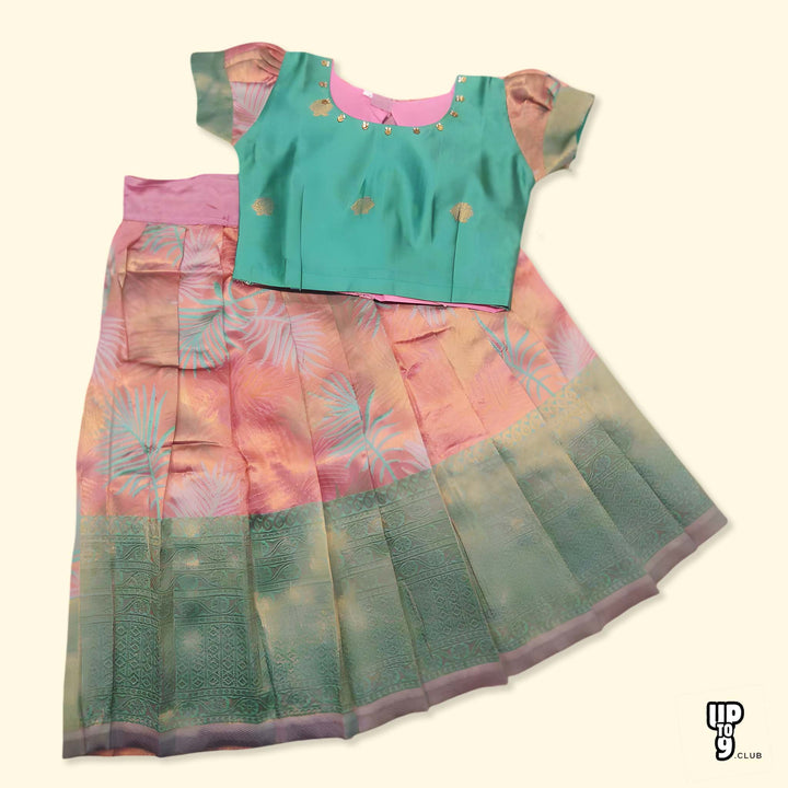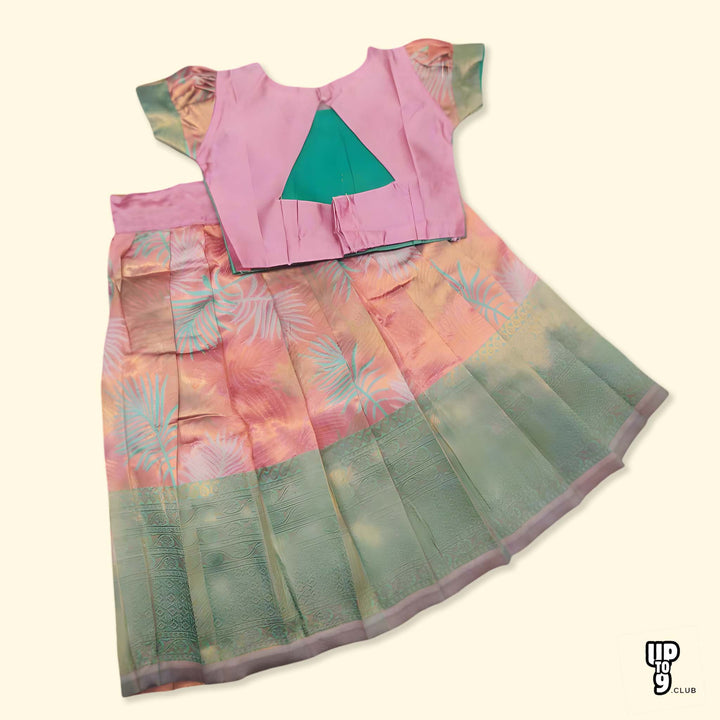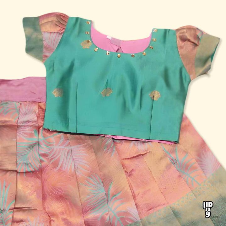 SRI LAKSHMI NARAYANA Girls Traditional Indian Lehenga Choli Set, Pink, Semi Silk Pattu Pavada 356SP