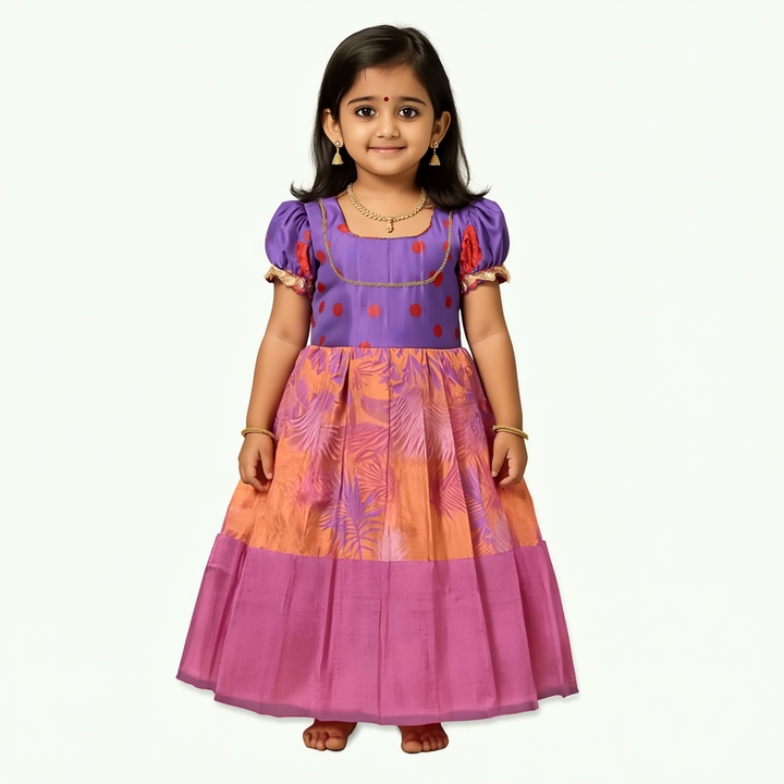 SRI LAKSHMI NARAYANA Girls Traditional Indian Lehenga Choli Set, Purple , Semi Silk Pattu Pavada 356SP