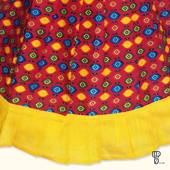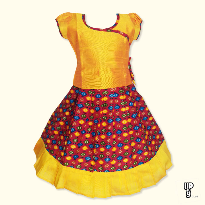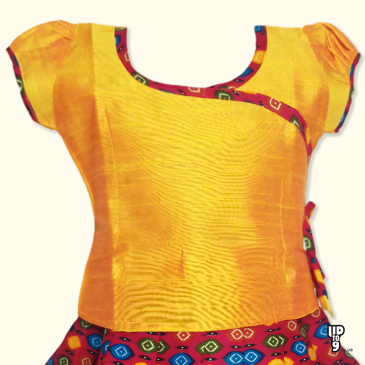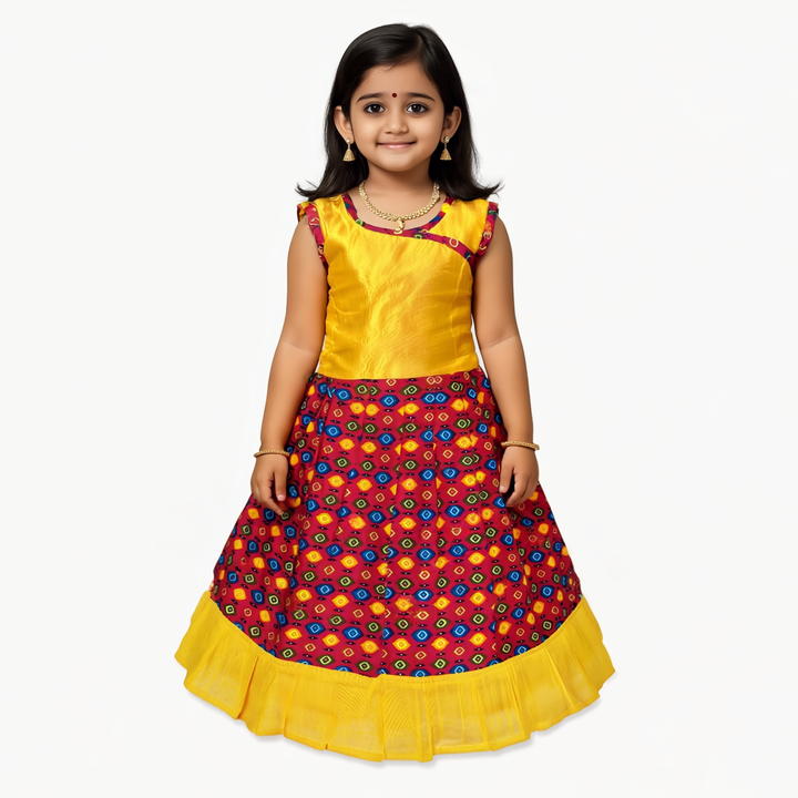 SRI LAKSHMI NARAYANA Girls Traditional Indian Lehenga Choli Set, Yellow, Ikat - Slub Silk Pattu Pavada 617SP