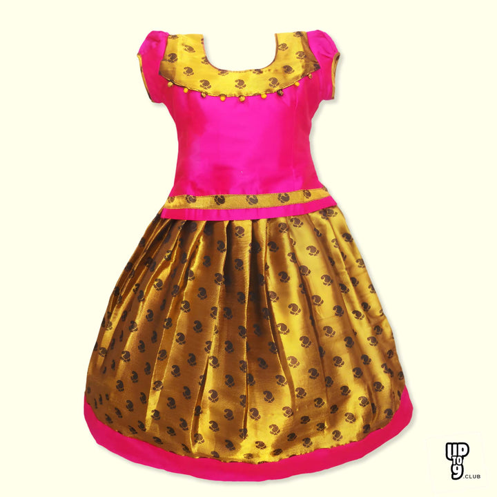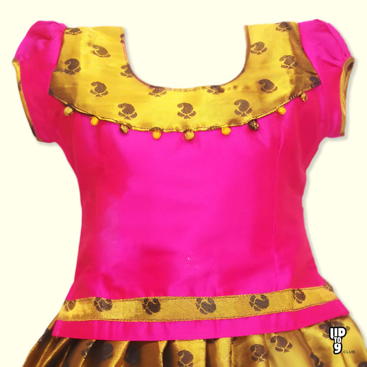 SRI LAKSHMI NARAYANA Girls Traditional Indian Lehenga Choli Set, Pink ,Jacquard Silk Pattu Pavada 925SP