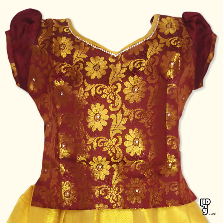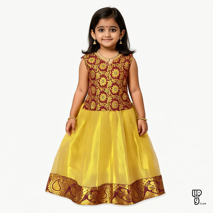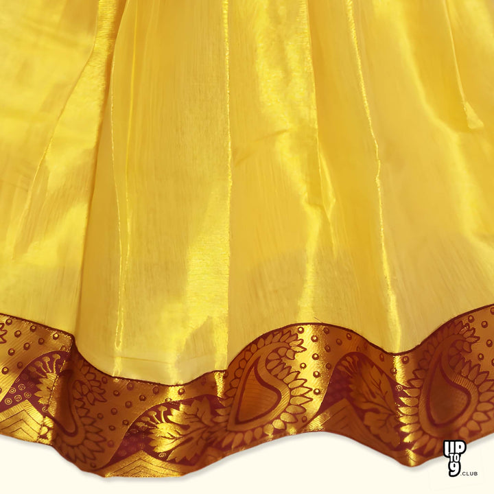 SRI LAKSHMI NARAYANA Girls Traditional Indian Lehenga Choli Set, Yellow, Tissue - Art Silk Pattu Pavada 440DP