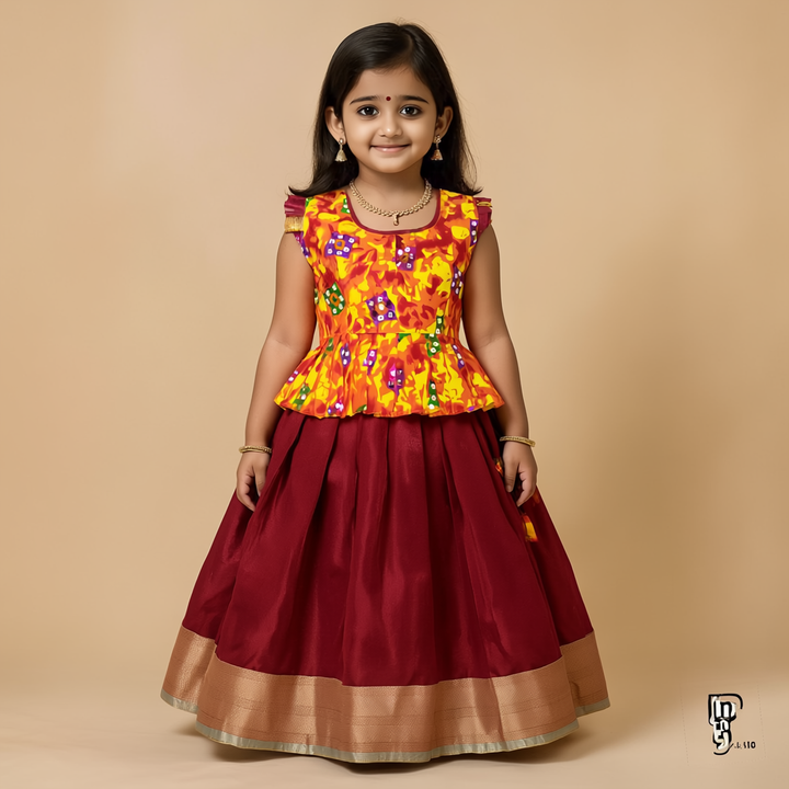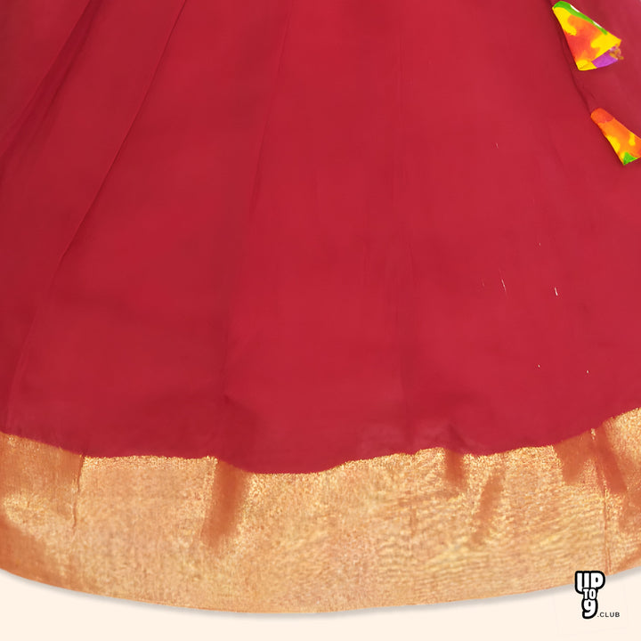 SRI LAKSHMI NARAYANA Girls Traditional Indian Lehenga Choli Set, Red, Cotton Pattu Pavada 613SP