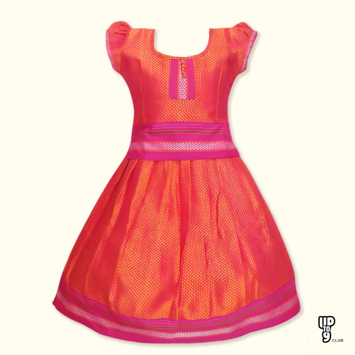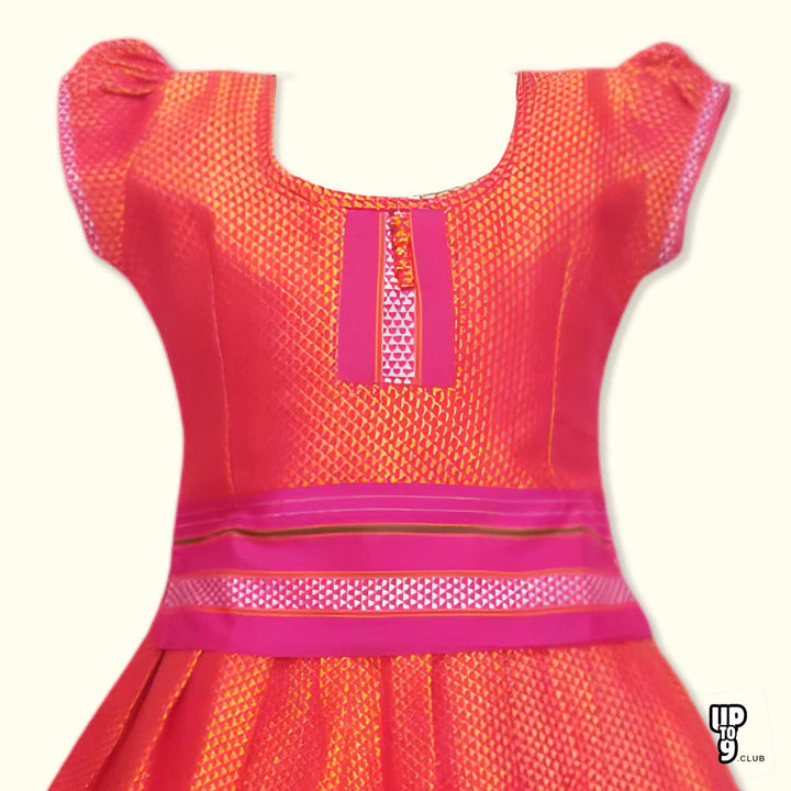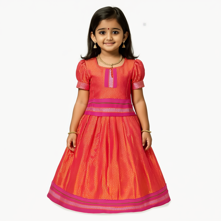 SRI LAKSHMI NARAYANA Girls Traditional Indian Lehenga Choli Set, Red, Khun Silk Pattu Pavada 504SP