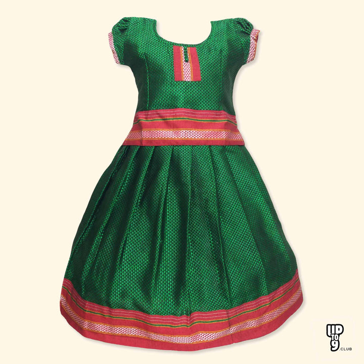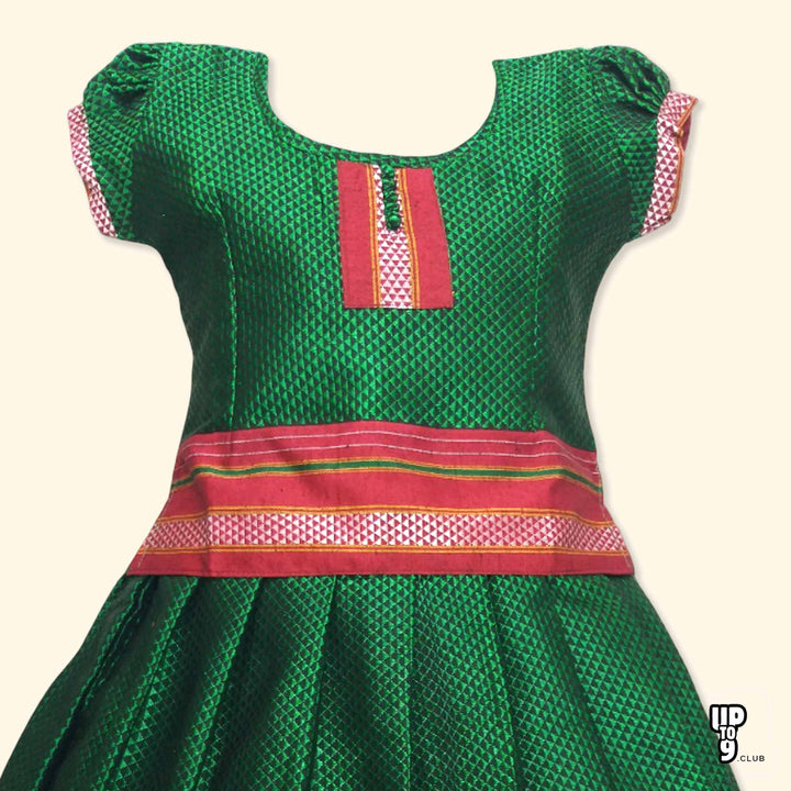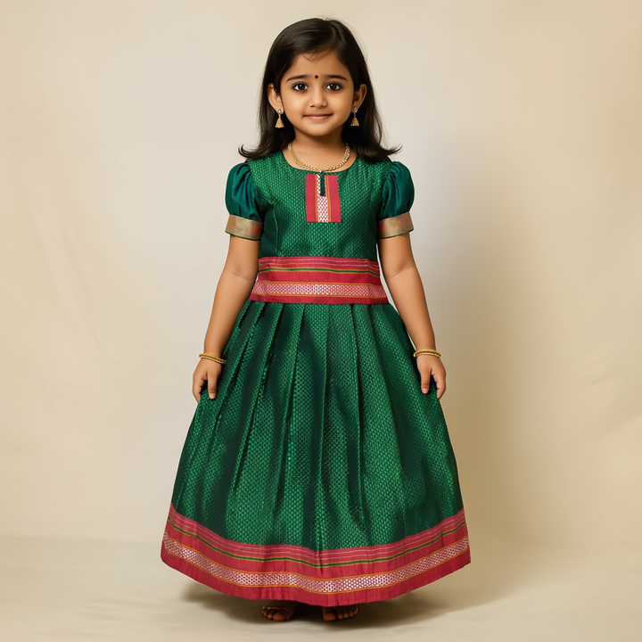 SRI LAKSHMI NARAYANA Girls Traditional Indian Lehenga Choli Set, Green, Khun Silk Pattu Pavada 504SP