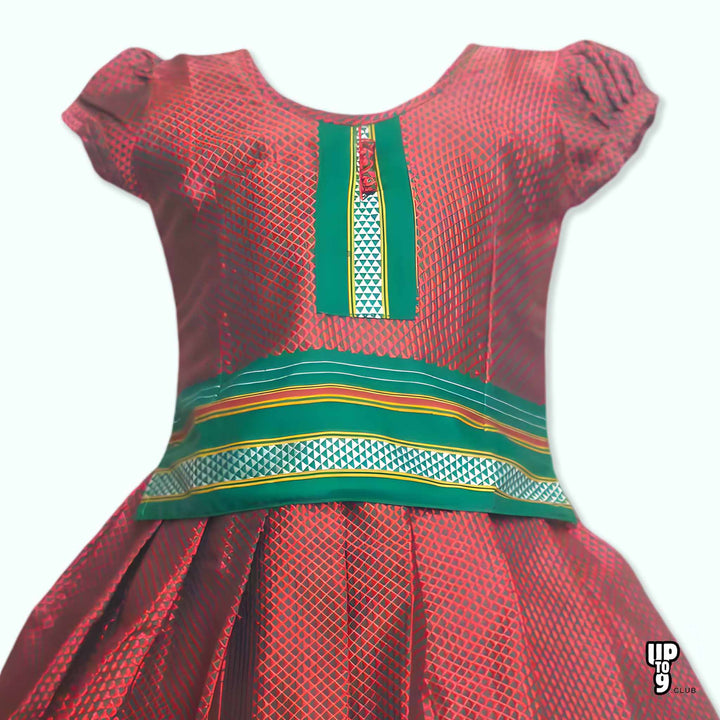 SRI LAKSHMI NARAYANA Girls Traditional Indian Lehenga Choli Set, Maroon, Khun Silk Pattu Pavada 504SP
