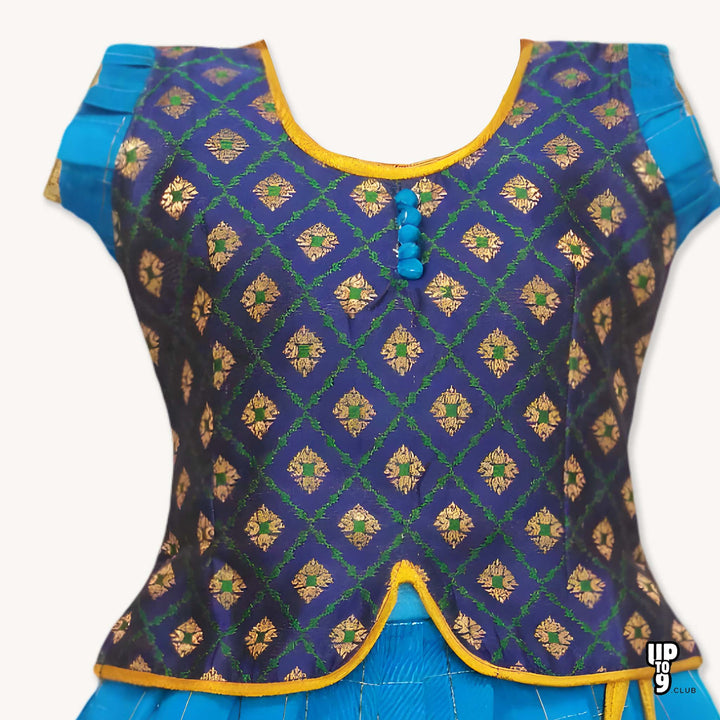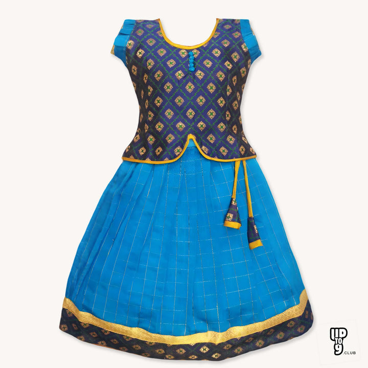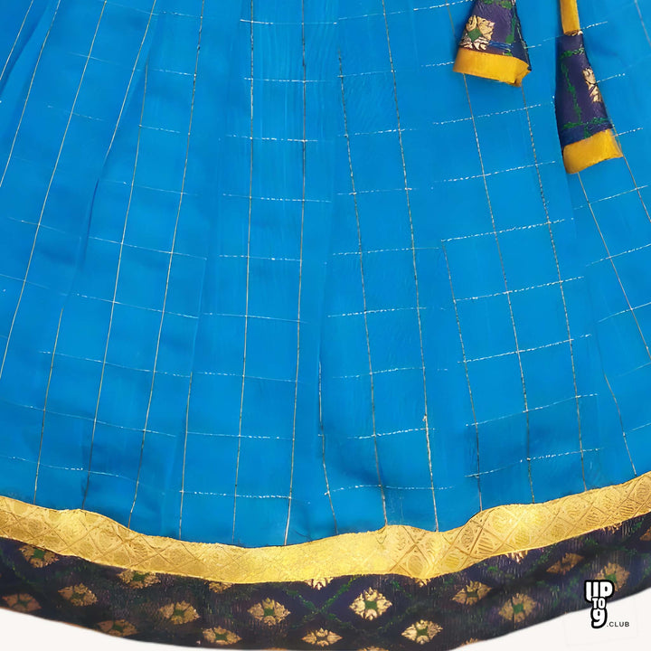 SRI LAKSHMI NARAYANA Girls Traditional Indian Lehenga Choli Set, Blue , Banaras - Slub Checkered Silk Pattu Pavada 313SP