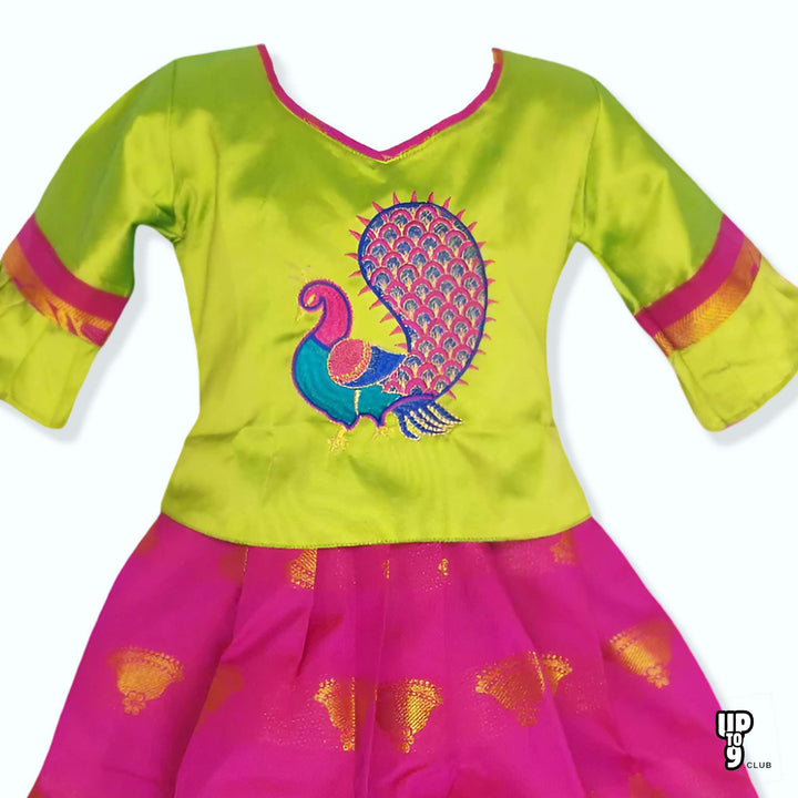 SRI LAKSHMI NARAYANA Girls Traditional Indian Lehenga Choli Set, Pink ,Art Silk - Embose Pattu Pavada 912SP