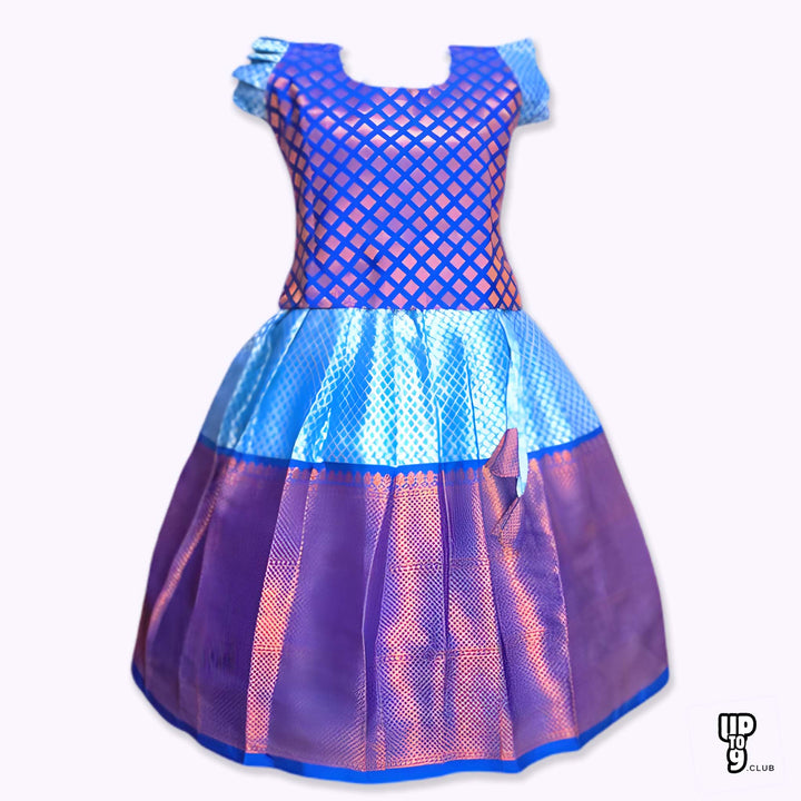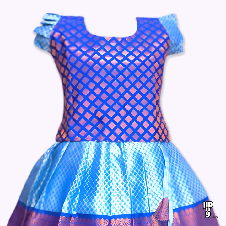 SRI LAKSHMI NARAYANA Girls Traditional Indian Lehenga Choli Set, Blue , Muslin Silk Pattu Pavada 351SP