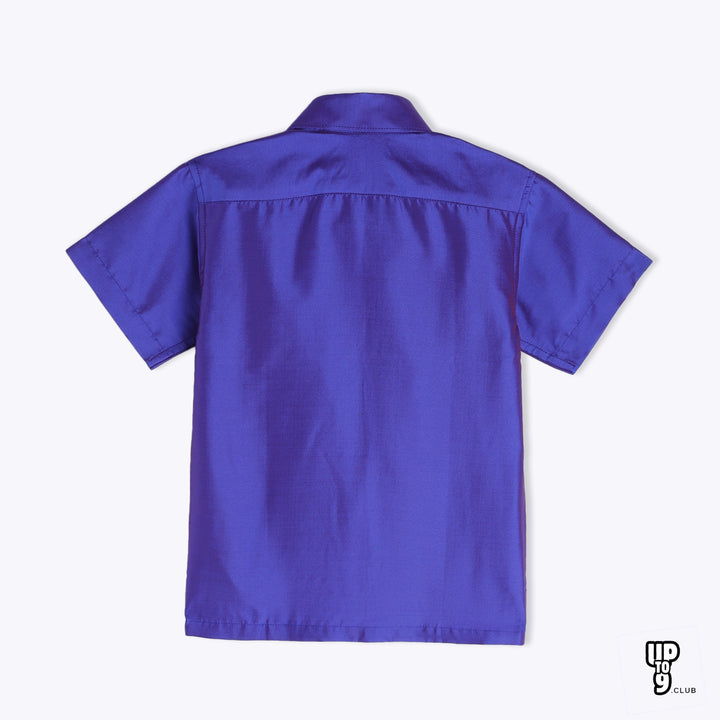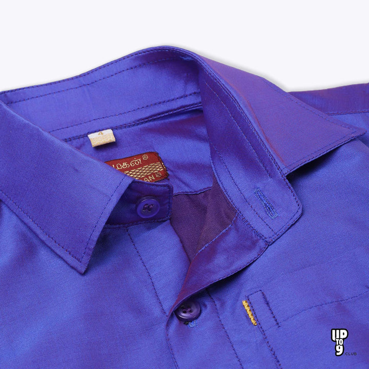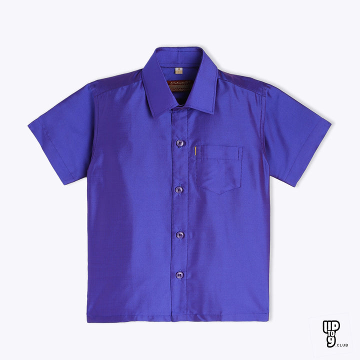 THANGAMAGAN PREMIUM Boys Lavender Shirt with Self-attaching Dhoti, Towel And Freebies Set