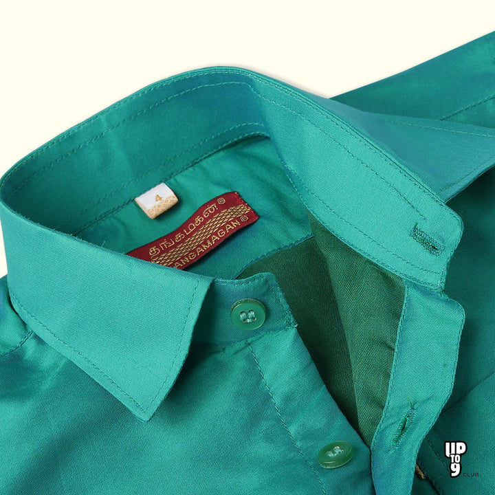 THANGAMAGAN PREMIUM Solid Teal Boys Panjagajam & Shirt Set