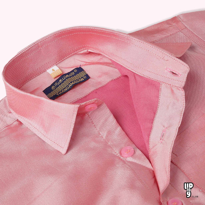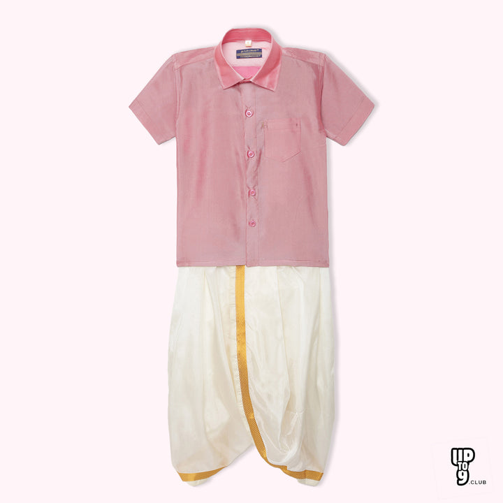 THANGAMAGAN PREMIUM Solid Pink Boys Panjagajam & Shirt Set