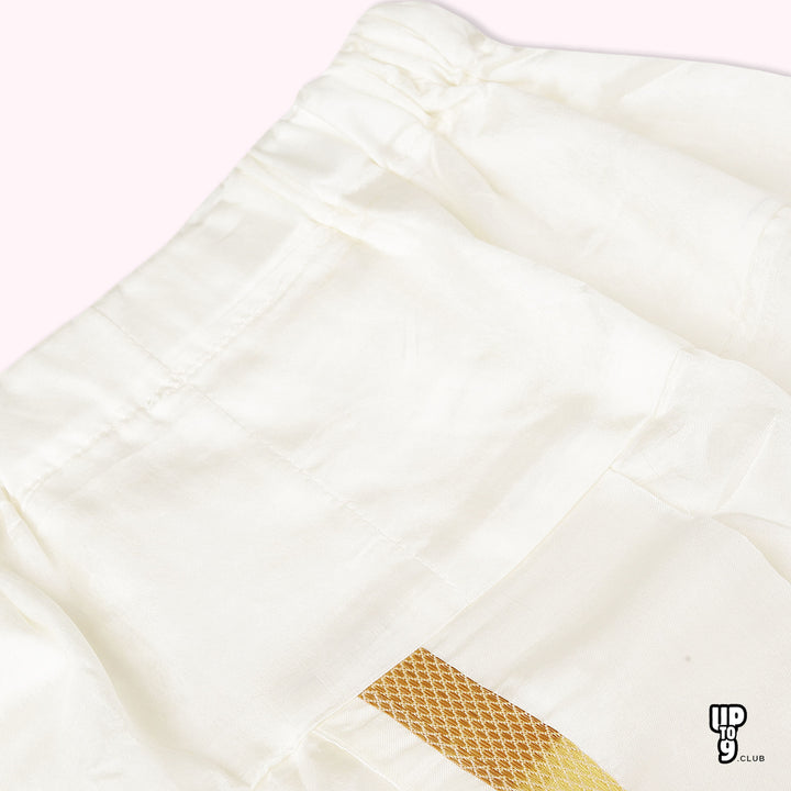 Thangamagan is an exclusive premium brand designed for the new age girls and boys. Simple elegance and richness are crafted into our clothes. Simple as just to wear by wrapping around your waist. No more hassles in keeping the veshti (dhothy) held on during the whole day/event. The Velcro strap that is sewn along the waistline of the garment ensures the garment layers are well positioned. Fold the waistline adjusted to your height, which will also make the straps around the waistline unseen. THANGAMAGAN comes in a variety of materials and colours. Handloom Silk, Dupion silk, Tussar Silk, Sateen Silk, Malar Silk (Polyester), Polyester Dupion, Ashai (Art Silk), Cotton, and Linen. Pick your style and colour. Be your unique THANGAMAGAN.