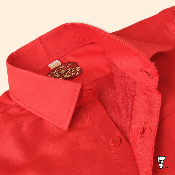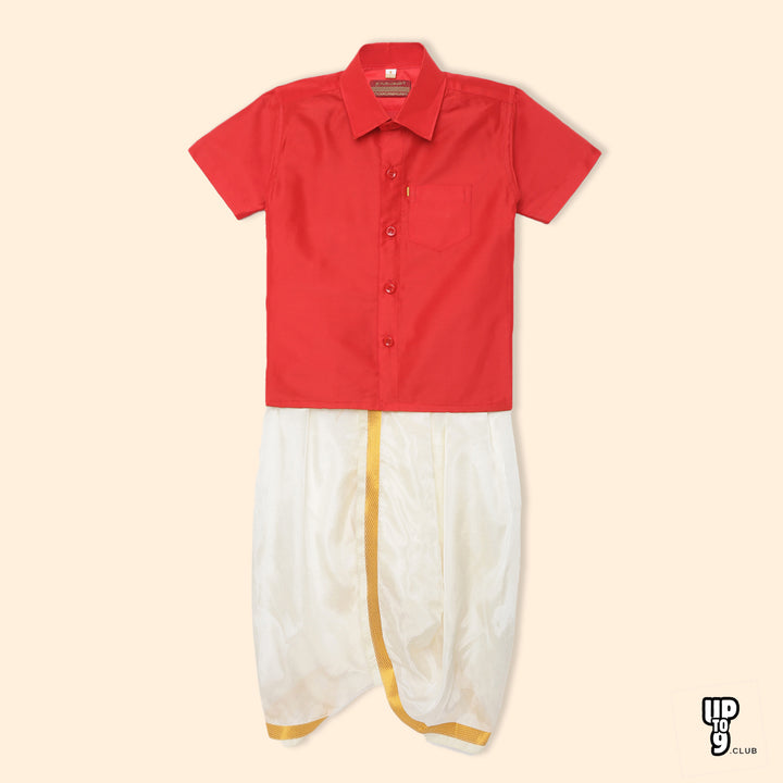 THANGAMAGAN PREMIUM Solid Red Boys Panjagajam & Shirt Set