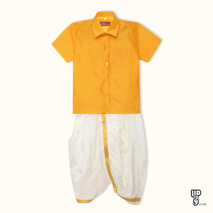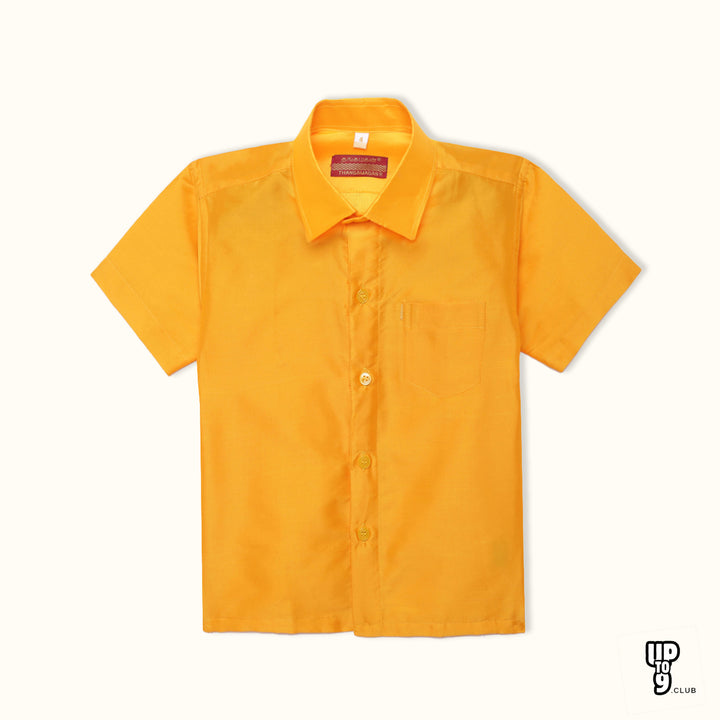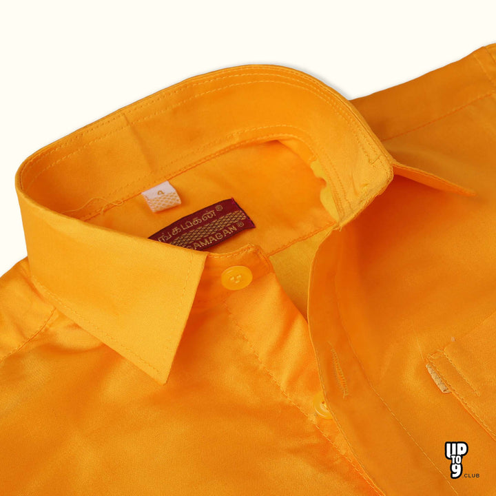 THANGAMAGAN PREMIUM Solid Yellow Boys Panjagajam & Shirt Set