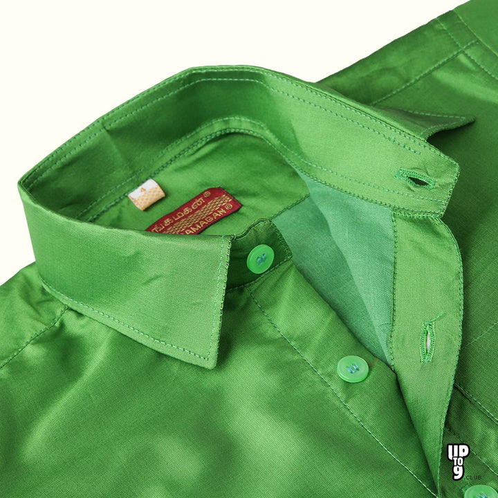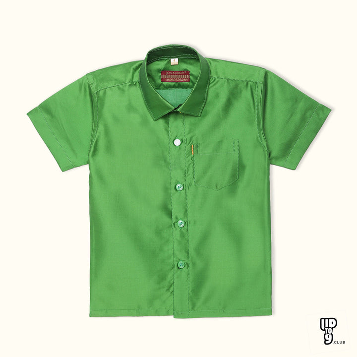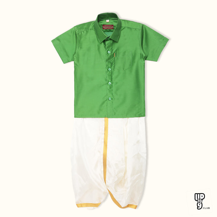 THANGAMAGAN PREMIUM Solid Green Boys Panjagajam & Shirt Set