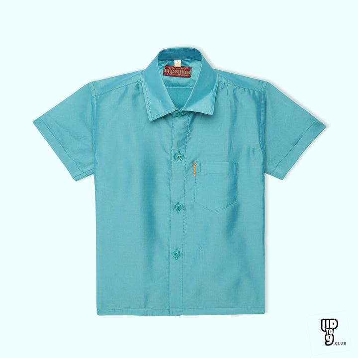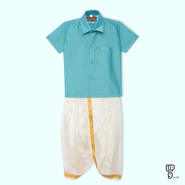 THANGAMAGAN PREMIUM Solid light blue Boys Panjagajam & Shirt Set