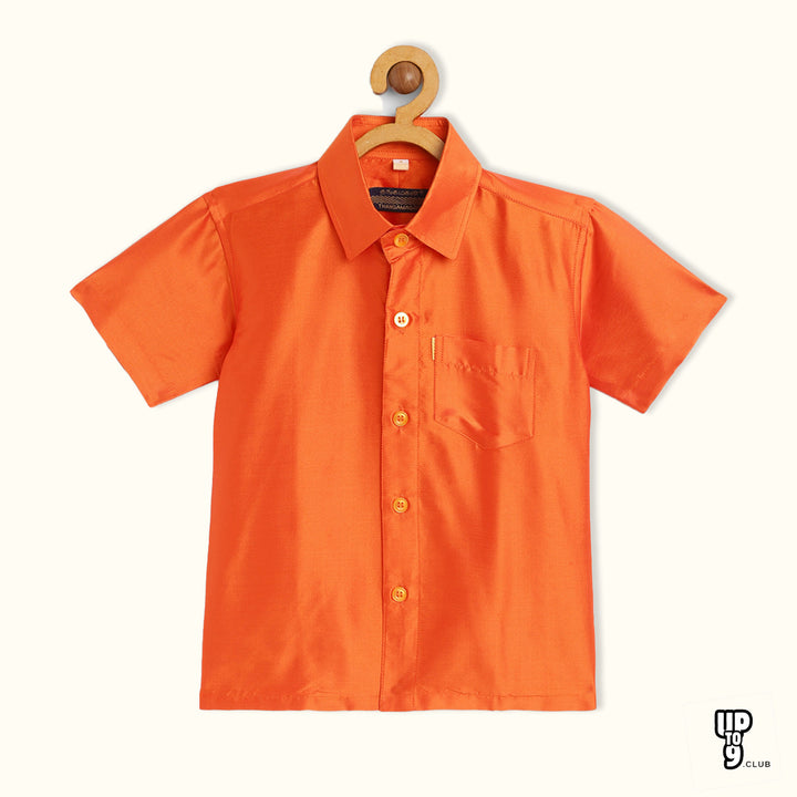 THANGAMAGAN PREMIUM Boys Orange Original Regular Fit Solid Casual Shirt